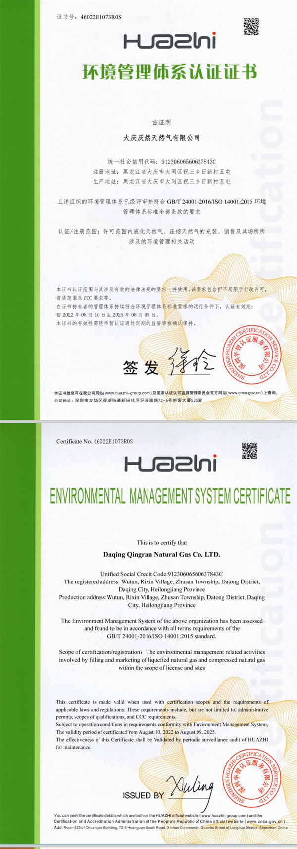 環(huán)境管理體系認(rèn)證證書(shū)