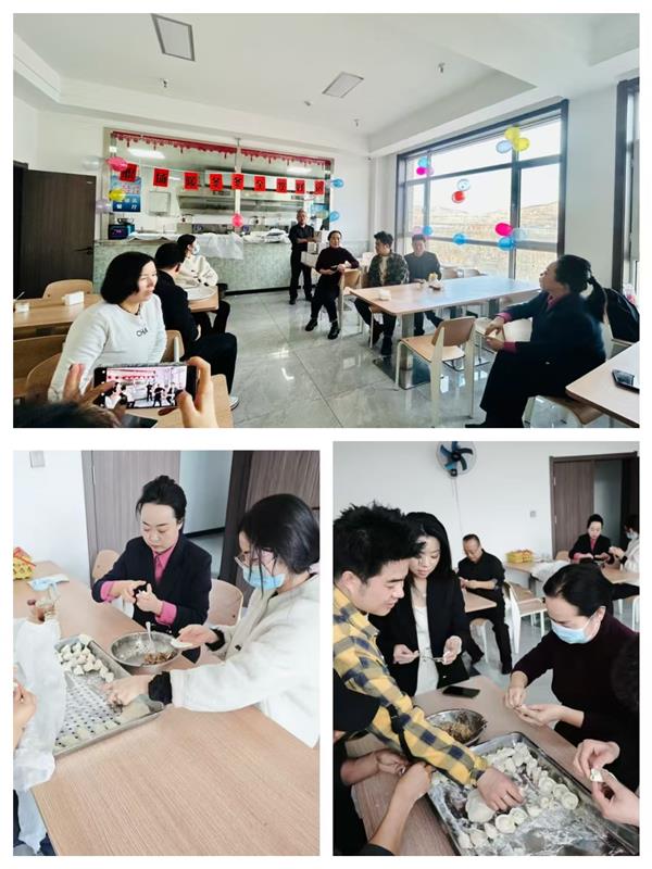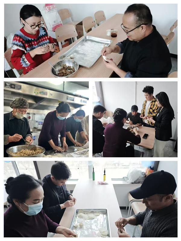 集團領(lǐng)導班子成員也一同加入到包餃子的行列中,一邊包餃子一邊與年輕員工分享冬至習俗:“冬至不端餃子碗,凍掉耳朵沒人管。今天咱們多包點,讓每個人都吃得暖暖和和!”