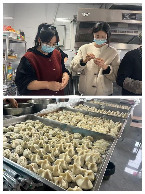 “左邊捏一下,右邊折一下,看,這樣就不會露餡了!”工會主席劉敏鑫一邊示范,一邊耐心指導著身旁新入職的同事。從生疏到熟練,不少第一次嘗試包餃子的員工,在伙伴們的鼓勵與幫助下,漸漸包出了像模像樣的餃子,臉上洋溢著滿滿的成就感。這不止是一場美食制作的體驗,更是同事間傳遞經(jīng)驗、交流情感的美好時光。